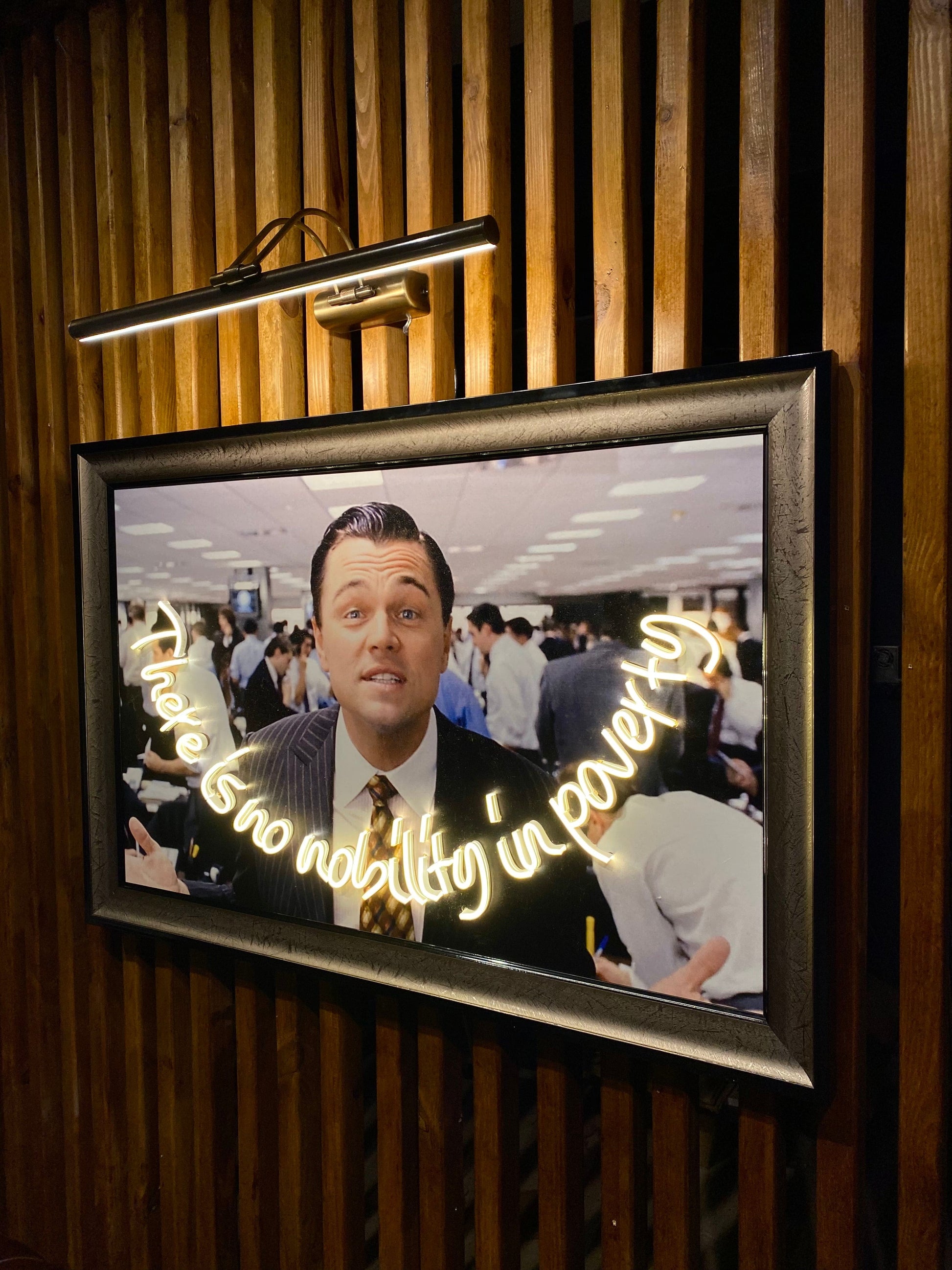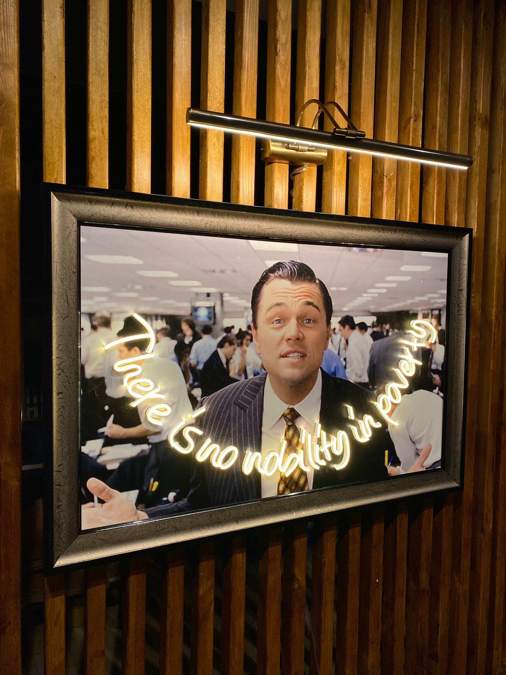 Neon Wall Art – “There Is No Nobility in Poverty” (Wolf of Wall Street Edition)